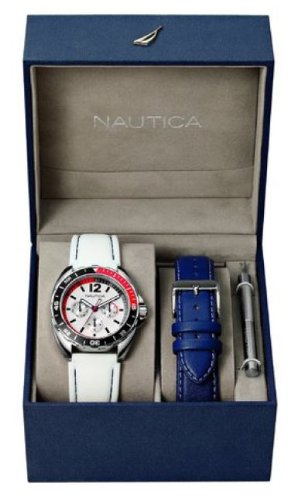 Stuhrling Original Men's 287.33591 Nautica Sports Swiss Quartz Black Dial Watch A very recent member of the Regatta Series, a branch of Stuhrling’s Water Sports Collection, the Nautico takes center stage with a look and feel that is unmatched by any other in its class! From start to finish, this beautiful timepiece was designed to amaze, as well as introduce features never before seen in Stuhrling’s collection! The Nautico is the first Stuhrling watch to feature a power reserve…with a chronograph movement! This timepiece will let you know, on command, how much power is left on the battery. It also has a white GMT hand that points to the 24 hour indicator: Roman numerals that go around the dodecagonal bezel. Beneath the hour and minute hands, each treated with Luminova, is the red alarm clock hand, which is set using the prominent red pusher at the 2 o’clock position. Amongst its complications, a small seconds hand, a day of week wheel, and a date aperture. The Nautico comes with one of the most beautiful bracelets in our collection. The three link design comes with a satin finish on the outside with central polished links in contrasting color that matches execution; this stainless steel bracelet was treated with Duracoat technology, which means that the color you see is permanent and incredibly scratch resistant. Heavy, rugged and strong, the Nautico is protected by Krysterna crystals, so you’ll you know that the watch will stay clear and easy to read for years to come!